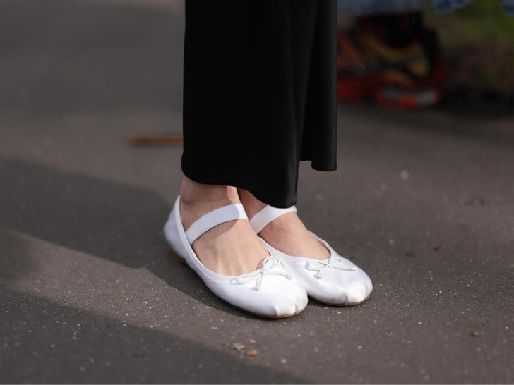 Балетки с квадратным мысом и широкими атласными лентами, напоминающие пуанты, в этом году вышли из моды. В 2024 они были популярны, но уже в 2025 их актуальность сойдет на нет. Если вы еще раздумываете о покупке таких балеток, откажитесь от этой идеи. Модные бренды предлагают более классические варианты балеток — с закругленным или острым носом. Чтобы разнообразить образы, выбирайте базовую обувь с анималистичными принтами.