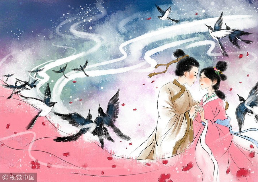 Согласно древним преданиям, молодой пастух по имени Нюлан жил в одиночестве, его жизнь была скромной и трудной. Его дни проходили в работе на земле, и его единственным другом был старый вол. Однажды Нюлан стал свидетелем того, как феи пришли купаться в озеро. Среди них была Чжинюй, известная также как Ткачиха, которая сразу привлекла внимание пастуха. Он забрал их платья и, когда Чжинюй вернулась к озеру, она обнаружила пропажу и, встречая Нюлана, нашла его привлекательным. Вскоре они поженились и построили счастливую семью.
