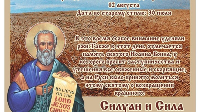 12 августа 2024 года православные христиане чтут память святых апостолов Силуана и Силоса (Силы). В древности крестьяне считали, что усердный труд в этот день обеспечит покровительство святых, даруя крепкое здоровье и жизненную силу на весь предстоящий год.